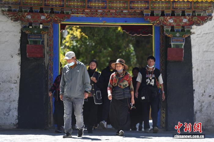 圖為游客在羅布林卡內(nèi)游覽金色頗章。貢確 攝