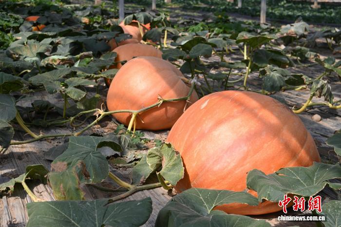 圖為墨竹工卡縣現(xiàn)代化農(nóng)業(yè)示范園里種植的巨型南瓜。中新社記者 貢嘎來松 攝