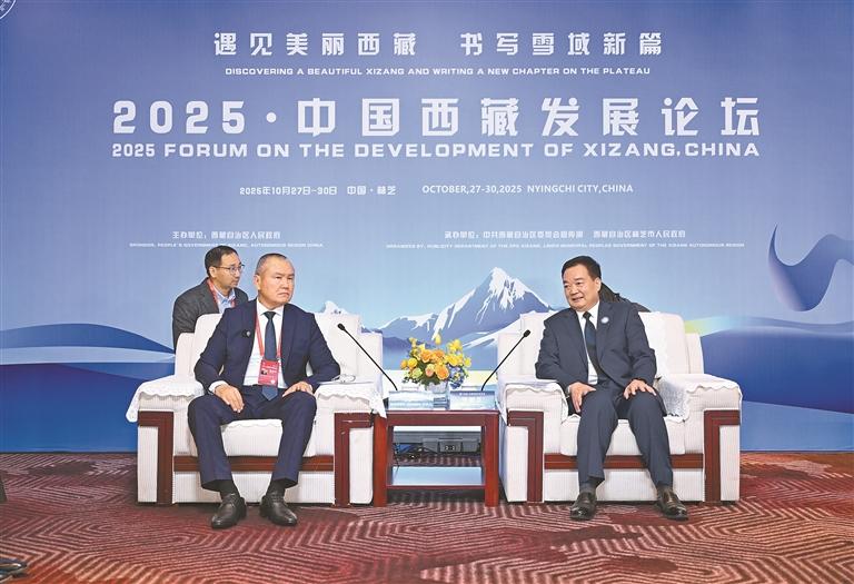 10月28日,自治區(qū)黨委書記王君正在林芝會(huì)見參加2025·中國西藏發(fā)展論壇的外國政要和駐華使節(jié)。這是王君正會(huì)見聯(lián)合國秘書長古特雷斯先生的代表,聯(lián)合國教科文組織駐華代表、東亞辦事處主任兼代表夏澤翰。本報(bào)記者 旦增西旦 攝