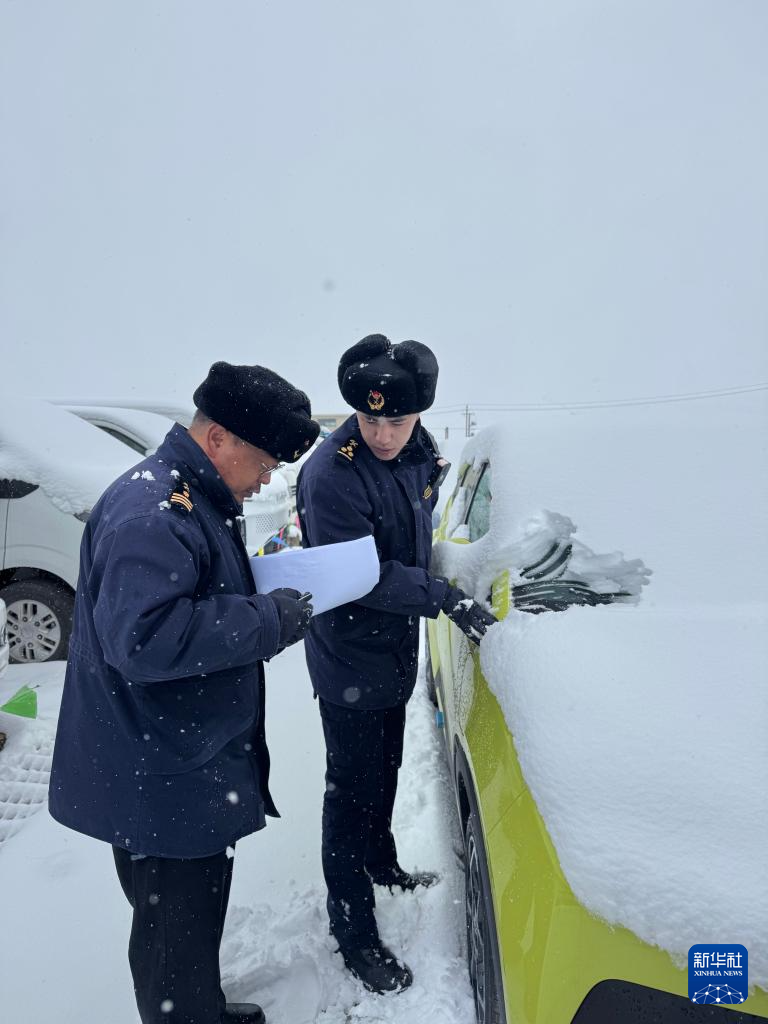 10月28日,日喀則海關(guān)關(guān)員在里孜口岸查驗(yàn)出口新能源汽車。(拉薩海關(guān)供圖)