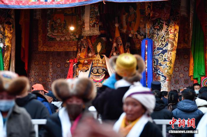 12月4日即藏歷十月十五日是藏族傳統(tǒng)的節(jié)日“白來(lái)日追”,俗稱“仙女節(jié)”、“白拉姆節(jié)”等。相傳藏傳佛教最高護(hù)法神之一班丹拉姆的女兒白拉姆,不顧母親的反對(duì)與赤尊贊私定終身,班丹拉姆一怒之下將赤尊贊趕到拉薩河南岸,規(guī)定二人僅每年的藏歷十月十五日相見(jiàn)。圖為信眾在大昭寺朝拜白拉姆像。中新社記者 貢嘎來(lái)松 攝