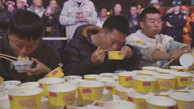 用餐過程中,“石子計(jì)數(shù)”是極具特色的環(huán)節(jié)。店家會在食客桌前放置一盅石子,每續(xù)一碗面便對應(yīng)放置一顆石子,既直觀統(tǒng)計(jì)食用碗數(shù),又蘊(yùn)含著“累積福氣”的美好寓意,傳遞著對食客的真誠與熱情。而“筷子橫放表示吃飽”和筷子擺放為“V”字形表示吃得很好、味道絕美的默契暗號,成為加加面用餐儀式中一道獨(dú)特的風(fēng)景線。