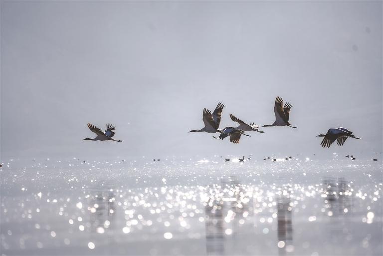 近日,被譽(yù)為 “高原仙子”的國(guó)家一級(jí)保護(hù)動(dòng)物黑頸鶴如期飛抵拉薩市林周縣卡孜水庫(kù)越冬,與斑頭雁、赤麻鴨等水鳥(niǎo)共同構(gòu)成高原濕地生態(tài)畫卷。