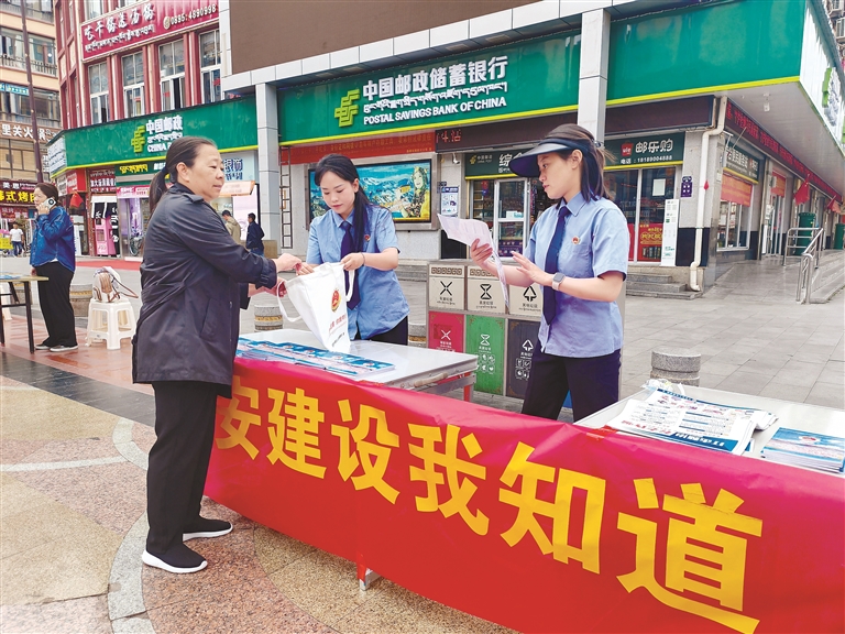 昌都市卡若區(qū)檢察院工作人員在發(fā)放宣傳冊。記者 貢秋曲措 攝