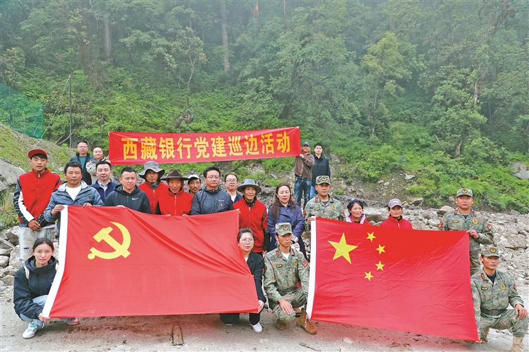 圖為西藏銀行與洛扎縣拉郊鄉(xiāng)開(kāi)展黨建巡邊活動(dòng)。