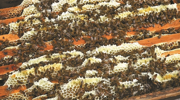 圖為蜂箱里的蜜蜂。