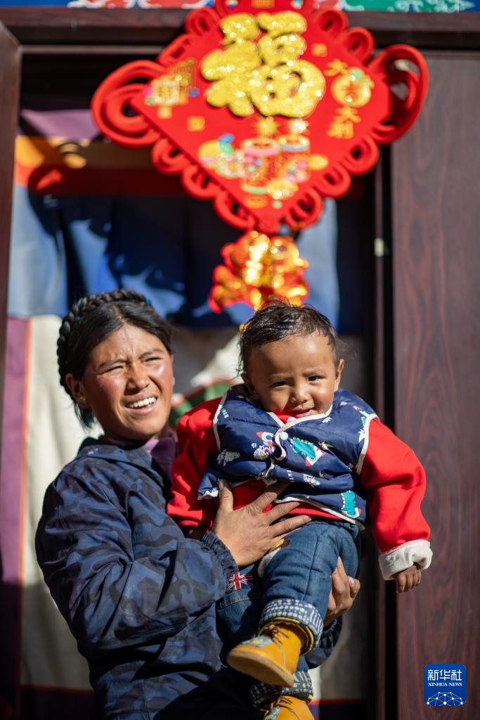 1月5日,在西藏定日縣長(zhǎng)所鄉(xiāng)雜村,母親朋瓊在家中逗弄次仁拉巴。新華社記者 姜帆 攝