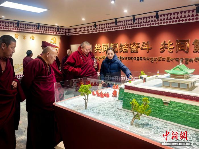 圖為桑耶寺僧人參觀桑耶寺鑄牢中華民族共同體意識教育館。曲桑 攝