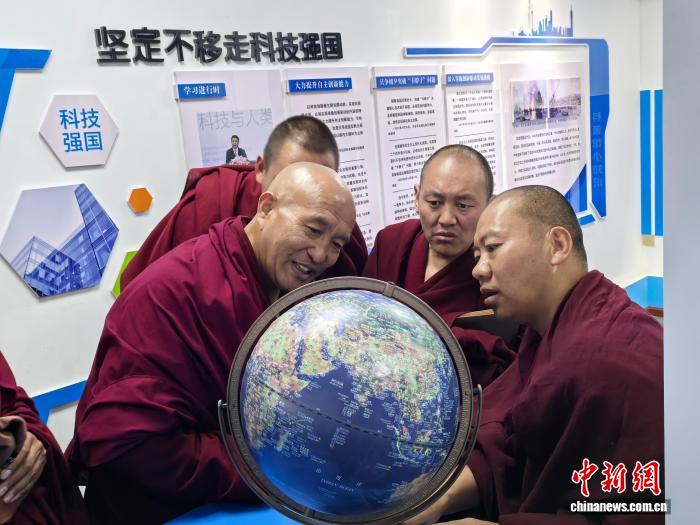 圖為僧人在館內(nèi)學習科普知識。曲桑 攝