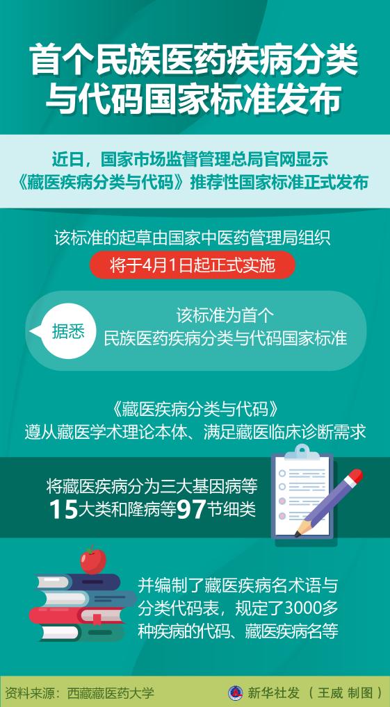近日,國(guó)家市場(chǎng)監(jiān)督管理總局官網(wǎng)顯示《藏醫(yī)疾病分類與代碼》推薦性國(guó)家標(biāo)準(zhǔn)正式發(fā)布。記者從參與起草的西藏藏醫(yī)藥大學(xué)了解到,該標(biāo)準(zhǔn)的起草由國(guó)家中醫(yī)藥管理局組織,將于4月1日起正式實(shí)施。據(jù)悉,該標(biāo)準(zhǔn)為首個(gè)民族醫(yī)藥疾病分類與代碼國(guó)家標(biāo)準(zhǔn)。