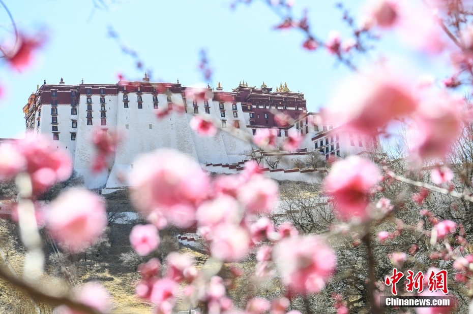3月15日,杏花映襯下的布達(dá)拉宮。新華網(wǎng) 旦增努布 攝