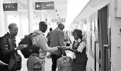 由中國企業(yè)采用全套中國標(biāo)準(zhǔn)和中國裝備建造的非洲第一條跨國現(xiàn)代電氣化鐵路——亞吉鐵路于2018年1月正式投入商業(yè)運營。圖為3月25日,在埃塞俄比亞首都亞的斯亞貝巴,列車員在亞吉鐵路拉布車站檢票。新華社發(fā)