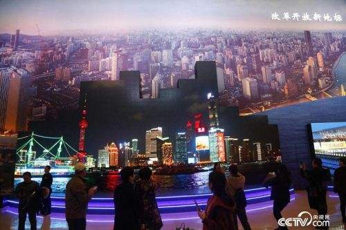 觀眾駐足觀看慶祝改革開(kāi)放40周年大型展覽(圖片來(lái)源:央視網(wǎng))