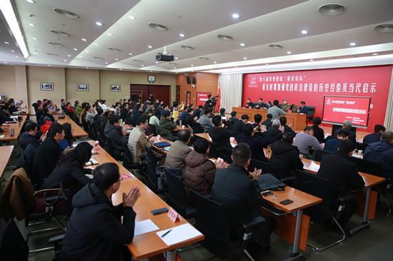 在主旨發(fā)言和分論壇階段,石仲泉、徐焰、龍?jiān)傧取徳?、戴焰軍、辛逸、韓強(qiáng)、包心鑒等知名學(xué)者和專家教授,圍繞加強(qiáng)政治建設(shè)的重大意義、理論邏輯、實(shí)踐要求、做法經(jīng)驗(yàn)等問題,進(jìn)行深入交流研討,貢獻(xiàn)思想智慧和研究成果。