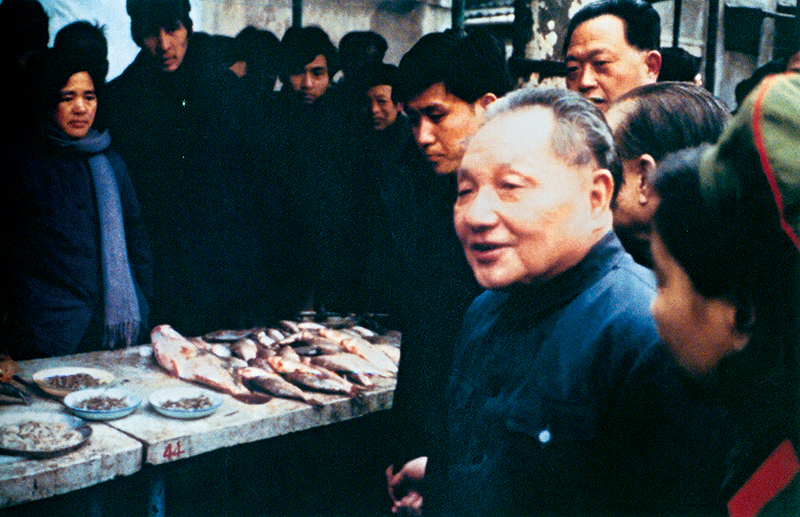 1983年2月,鄧小平同志視察上海市靜安區(qū)膠州路農(nóng)貿(mào)市場(chǎng)。