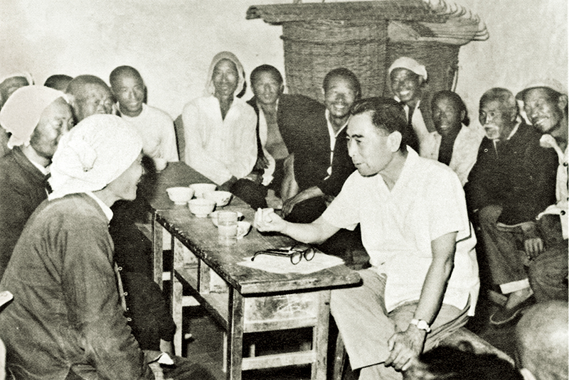 1961年5月,周恩來(lái)同志帶領(lǐng)工作組在河北邯鄲農(nóng)村調(diào)查。