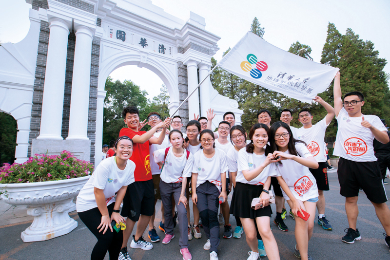 每年的畢業(yè)季,清華大學都會舉行畢業(yè)長跑,即將離開母校的學子們沿著精心設計的路線,依次跑過那些承載著清華記憶的場所,重溫“自強不息 厚德載物”的校訓,上好離校前的“最后一課”。圖為2018年7月4日,畢業(yè)生們在主題為“擁抱新時代 青春正起航”的長跑活動中在二校門前合影。 清華大學 李浩然/攝
