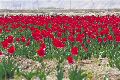 除了常見的紫色、紅色、粉色和黃色的郁金香外,“香雄美朵”生態(tài)旅游文化產業(yè)園區(qū)相關負責人介紹,這里的郁金香還有紅色白邊、粉色黃邊、粉色、橙色、黑色、黑色白邊、深粉等7種顏色。眼下,紅色、紫色、黃色這三種顏色的郁金香開得正旺,而白色、粉色、粉色黃邊、紅色白邊的郁金香大多數還打著花苞?!肮烙嬙儆邪雮€月,這片還是花苞的郁金香也會競相開放了。”該負責人說。