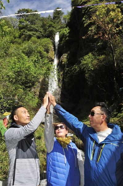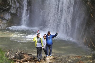25歲的巴桑扎西趁著休假,帶著父母參團(tuán)來(lái)勒布溝旅行。13日剛好是母親節(jié),一路上他或是抱著母親拍照,或是在路不好走的時(shí)候攙扶母親,一家人其樂(lè)融融,濃濃的親情感染著大家。