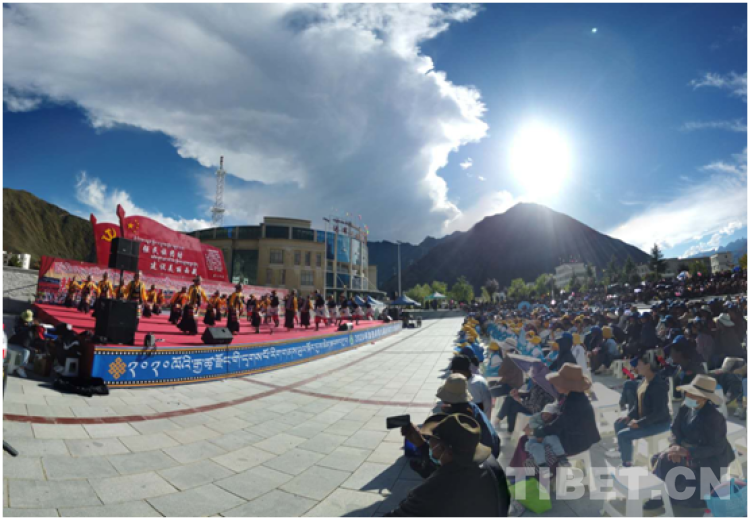 在文藝演出開始前,來自仁青林搬遷點的洛桑云丹老人講述了他的搬遷歷程,他將中央第七次西藏工作座談會、“四講四愛”以及中央、西藏自治區(qū)黨委、山南市委有關(guān)加強民族團(tuán)結(jié)的相關(guān)精神,用通俗易懂的話語講給大家聽,讓大家明白民族團(tuán)結(jié)的重大意義,理解團(tuán)結(jié)穩(wěn)定是福、分裂動亂是禍的道理。