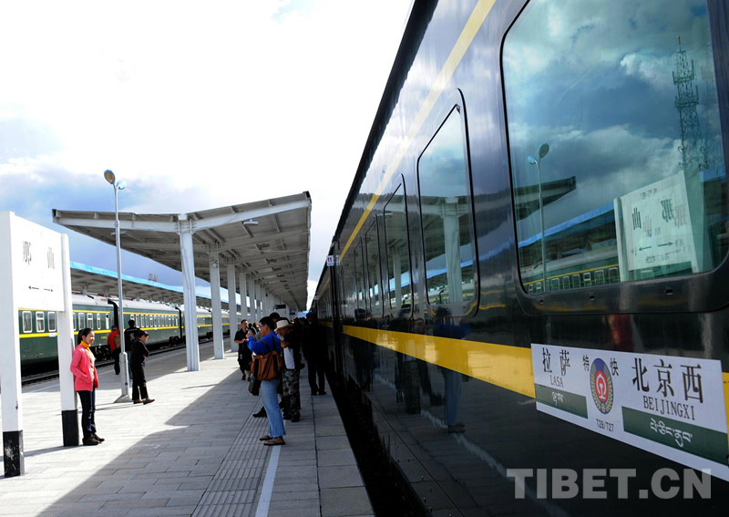 這是拉薩開(kāi)往北京的T28次京藏列車(chē)到達(dá)藏北首府的那曲車(chē)站(唐召明2012年8月12日攝)