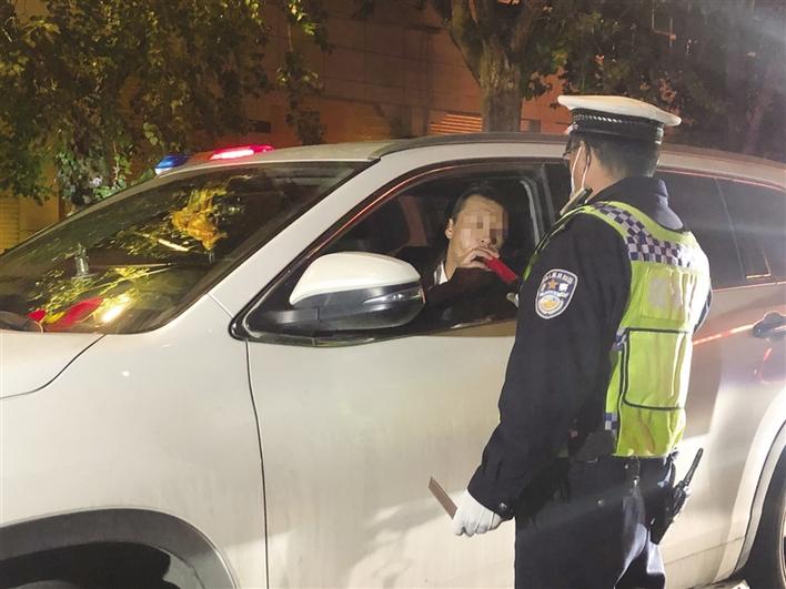 拉薩市交警開(kāi)展夜間檢查。
