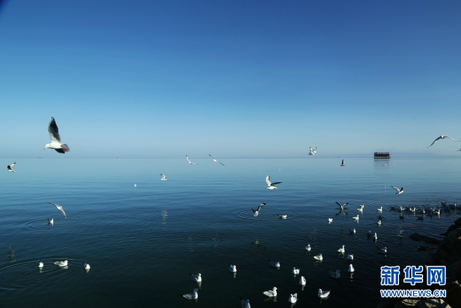 湖面上,成群結(jié)隊(duì)的棕頭鷗
