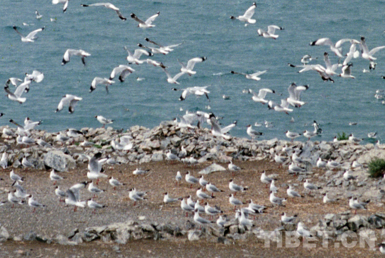這是在藏北高原班公錯(cuò)鳥(niǎo)島棲息的成群棕頭鷗(唐召明1995年攝)