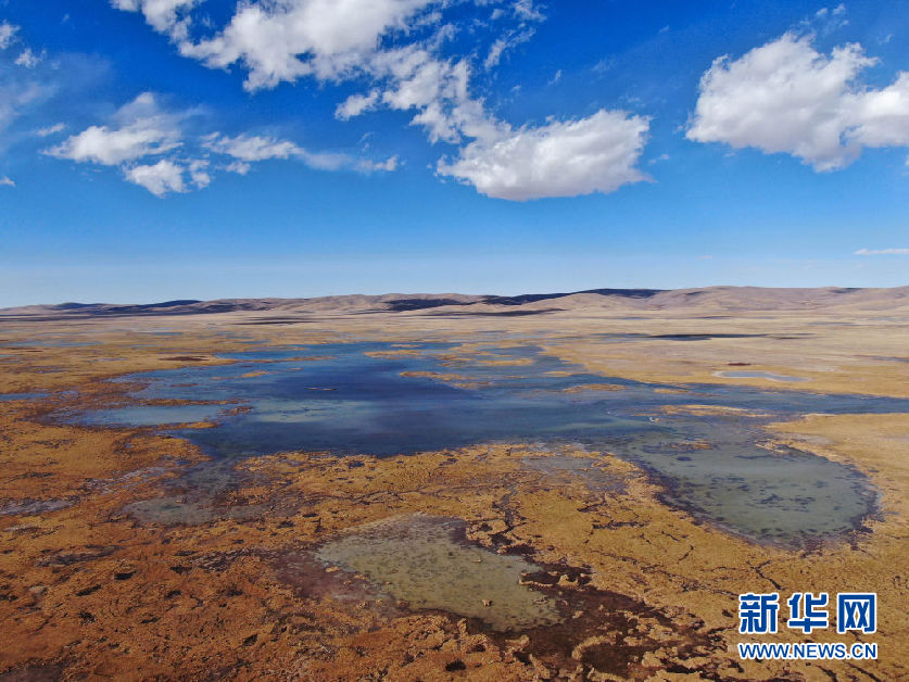 這是10月30日在青海省果洛藏族自治州瑪多縣境內(nèi)拍攝的一處濕地(無(wú)人機(jī)照片)。新華社記者 張龍 攝