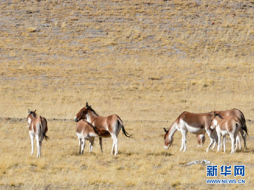 這是10月30日在青海省果洛藏族自治州瑪多縣境內(nèi)拍攝的一群藏野驢。新華社記者 張龍 攝