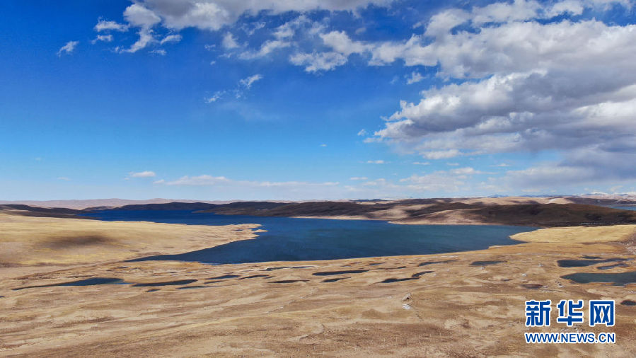 這是10月30日在青海省果洛藏族自治州瑪多縣境內(nèi)拍攝的一處湖泊(無(wú)人機(jī)照片)。新華社記者 張龍 攝