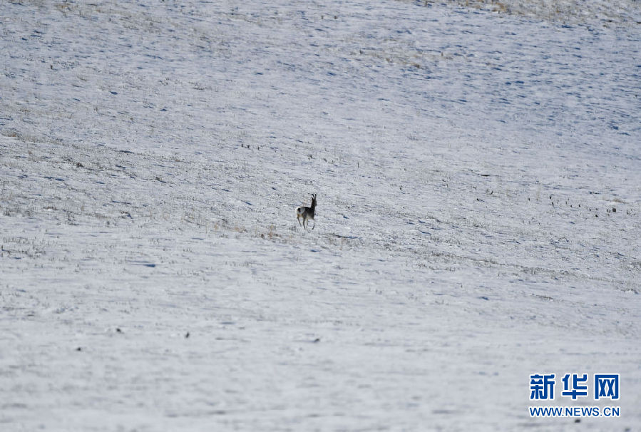 這是10月29日在青海省玉樹(shù)藏族自治州稱多縣嘉塘草原上拍攝的一只藏原羚。新華社記者 張龍 攝