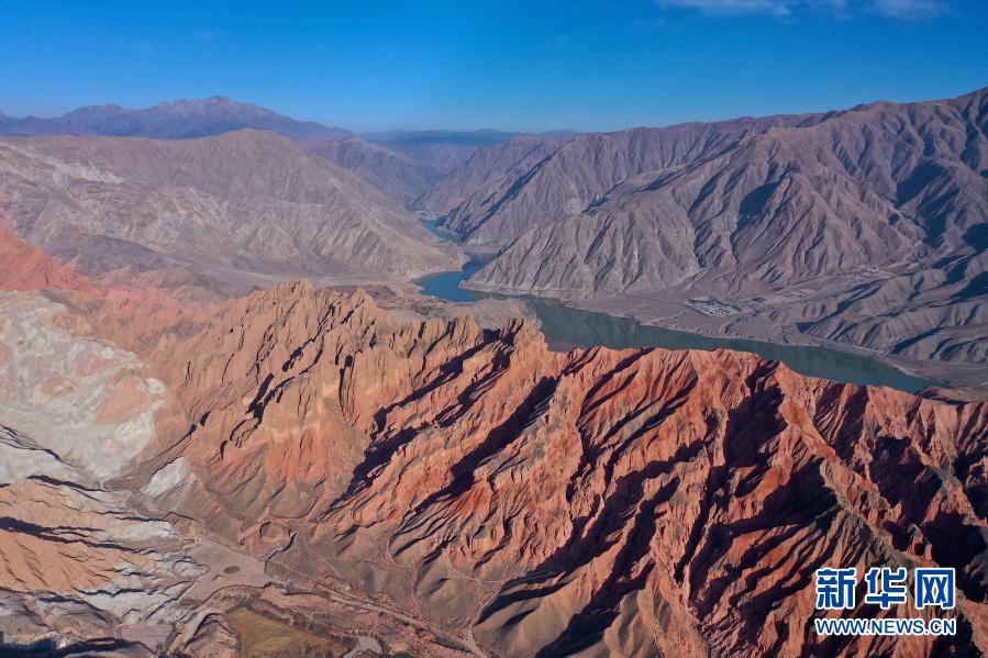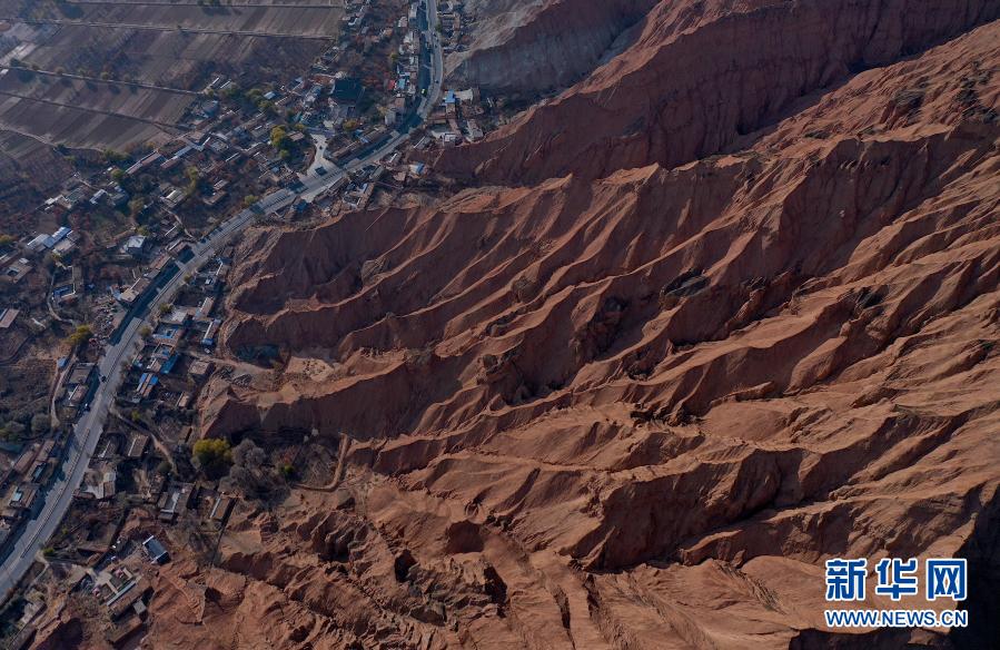 這是11月14日在貴德縣拍攝的丹霞地貌(無(wú)人機(jī)照片)。新華社記者 吳剛 攝