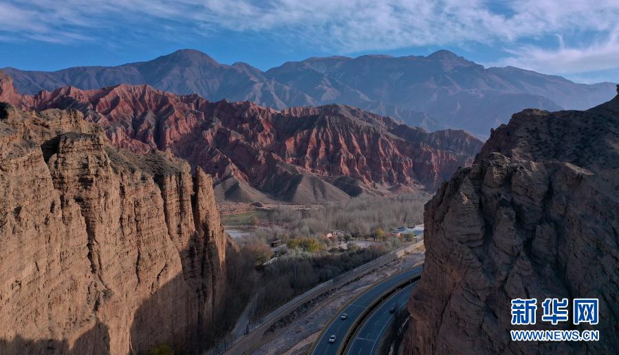 冬日時(shí)節(jié),青海省海南藏族自治州貴德縣的丹霞地貌在陽(yáng)光的照耀下,形成一幅美麗畫(huà)卷。