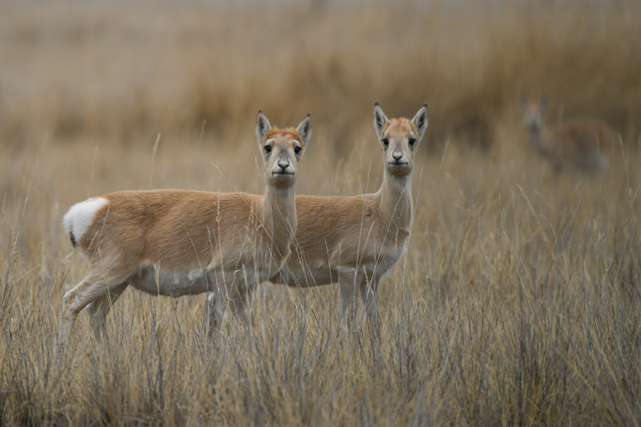 11月20日,東知布拍攝在特護區(qū)內(nèi)活動的普氏原羚。新華網(wǎng) 潘彬彬攝