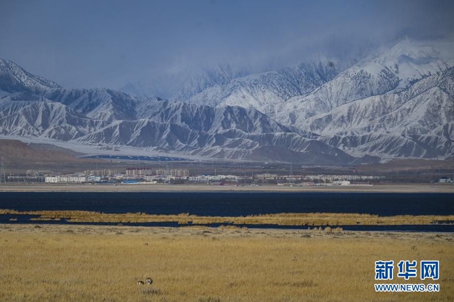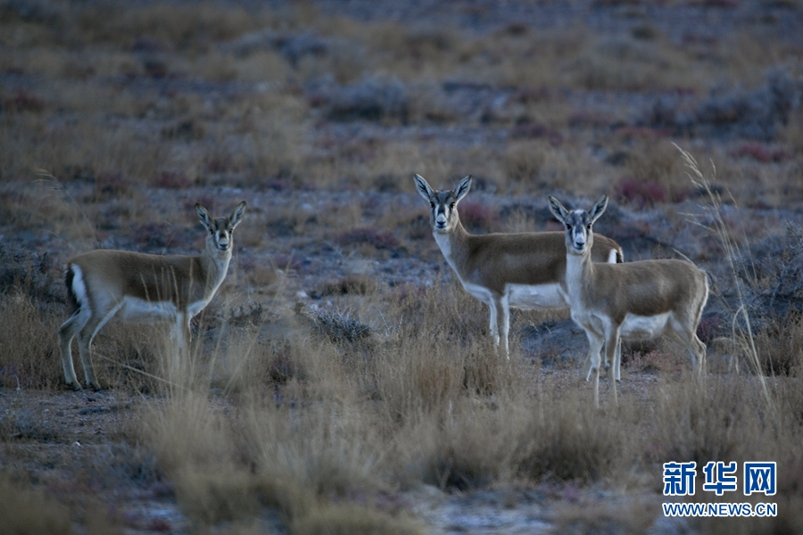 在都蘭湖國家濕地公園內(nèi)拍攝到的鵝喉羚。(11月21日攝)新華網(wǎng) 潘彬彬攝