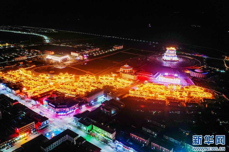 夜幕下的剛察縣燈火通明。新華網發(fā)(董松松 攝)