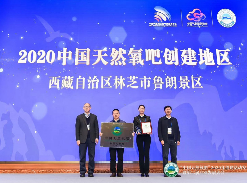 11月24日,由中國氣象服務協(xié)會主辦的“中國天然氧吧”2020年創(chuàng)建活動發(fā)布會暨第二屆產(chǎn)業(yè)發(fā)展大會在云南省紅河州彌勒市舉辦。在當天的授牌儀式上,全國共有79個地區(qū)獲得“中國天然氧吧”稱號。其中,西藏林芝市魯朗景區(qū)成功入選,成為繼山南市錯那縣勒布溝之后,西藏自治區(qū)第二個獲此稱號的地區(qū)。