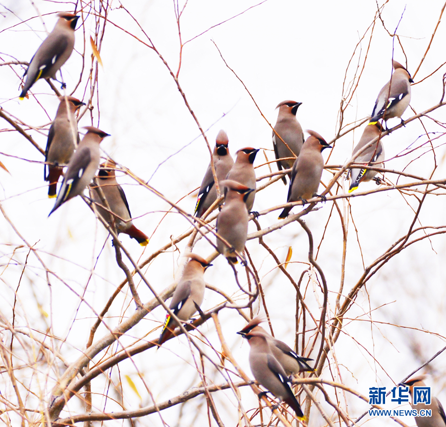 一群太平鳥(niǎo)在樹(shù)枝上休憩。新華網(wǎng)發(fā)(李崇軒攝)