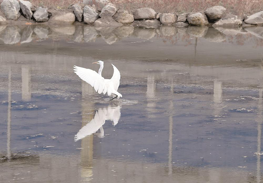 “咕、咕、咕……”11月25日13時(shí)許,走進(jìn)西寧南川河與湟水河交匯處,在清澈見底的河道里,一只大白鷺正悠然自得地來(lái)回踱步,獨(dú)自覓食,不時(shí)發(fā)出陣陣歡快的叫聲。