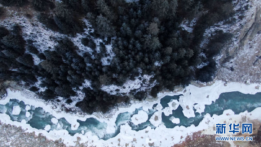 這是青海省祁連縣境內的黑河峽谷風光(12月10日攝,無人機照片)。新華社記者 張宏祥 攝