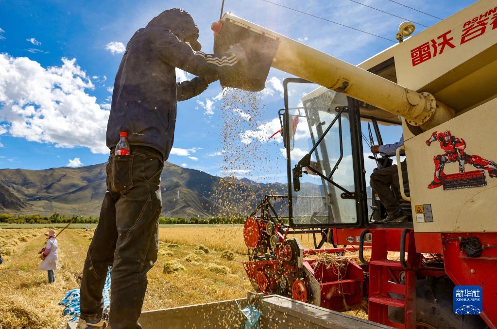 第五個中國農(nóng)民豐收節(jié)在即,西藏自治區(qū)拉薩市林周縣的田間地頭一片繁忙。據(jù)了解,林周縣目前累計糧食收獲面積為12.43萬畝,已收獲秋糧總產(chǎn)量預(yù)估6萬噸,豐收在望。