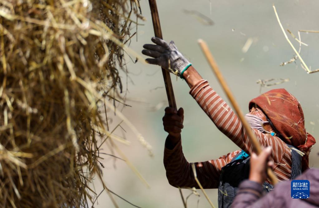9月21日,拉薩市林周縣邊林鄉(xiāng)當(dāng)杰村的村民在收集秸稈。新華社記者 覺果 攝