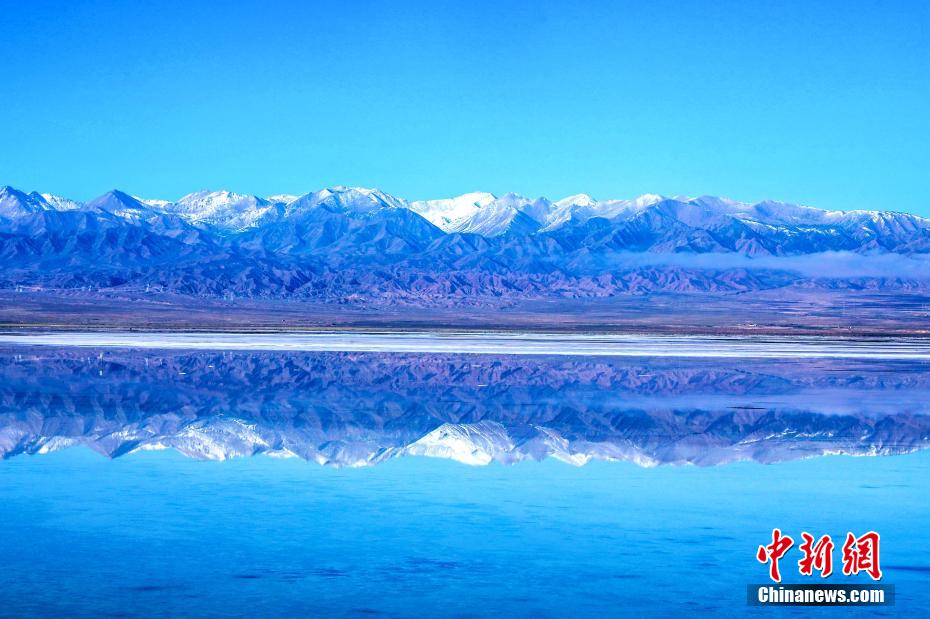 深秋已至,位于青藏高原的茶卡鹽湖,湖水逐漸純凈,鹽層開始結晶,平靜的湖面如同一面天然鏡子,反射著美麗的天空與遠處的雪山,形成水天一色的景象。茶卡鹽湖位于柴達木盆地的青海省海西蒙古族藏族自治州烏蘭縣茶卡鎮(zhèn)境內(nèi)。湖面海拔約3100米,湖面面積105平方公里。這里歷史悠久,文韻悠長,是中國鹽文化發(fā)源地之一,是天然的結晶鹽湖。由于湖面結晶鹽層上鹵水的反射形成鏡面效果,水天倒映,美不勝收,被稱為中國版“天空之鏡”。圖為水天一色景致。 王生榮 攝