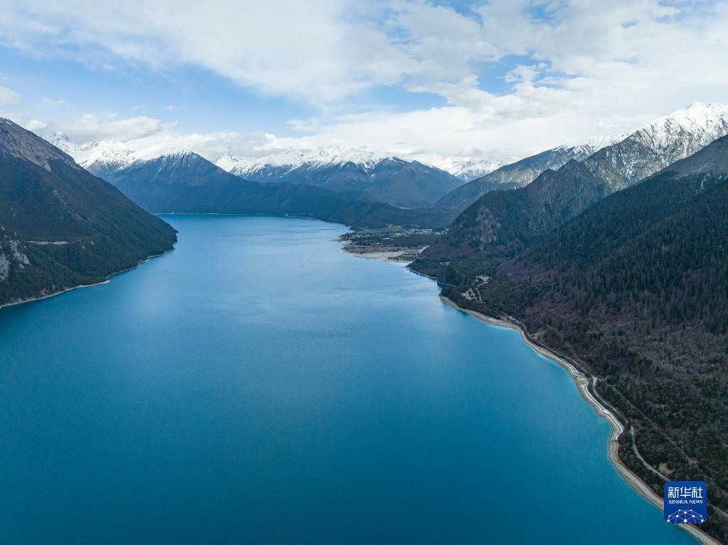 這是4月15日拍攝的巴松措風(fēng)光(無人機照片)。新華社記者 孫非 攝