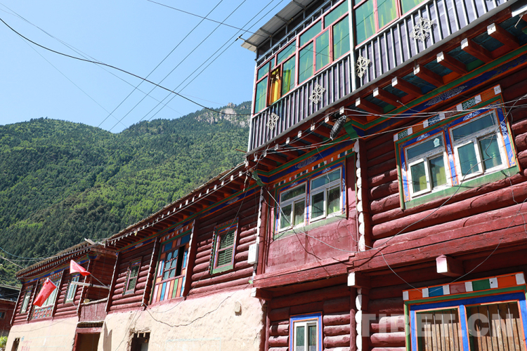 圖為崗?fù)写邋e(cuò)落有致的藏式民居