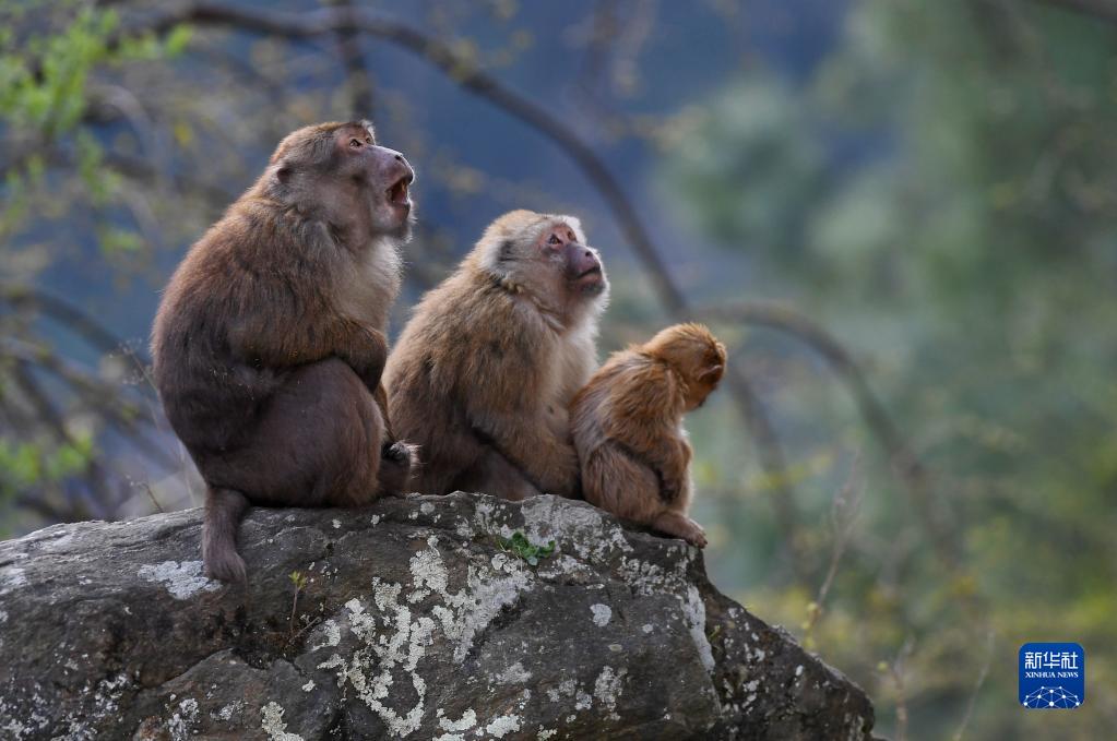 勒布溝里的獼猴(4月25日攝)。新華社記者 張汝鋒 攝