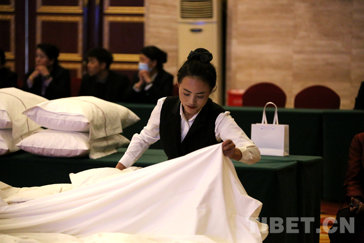 中國西藏網(wǎng)訊 5月11日,由西藏自治區(qū)旅游發(fā)展廳、西藏自治區(qū)總工會、共青團(tuán)西藏自治區(qū)委員會、西藏自治區(qū)婦女聯(lián)合會主辦,西藏旅游飯店業(yè)協(xié)會承辦的2023年西藏自治區(qū)星級飯店從業(yè)人員服務(wù)技能競賽在拉薩開賽。45名選手圍繞中餐宴會擺臺、西餐宴會擺臺、中式鋪床及夜床服務(wù)、前廳服務(wù)4個(gè)項(xiàng)目同臺競技。