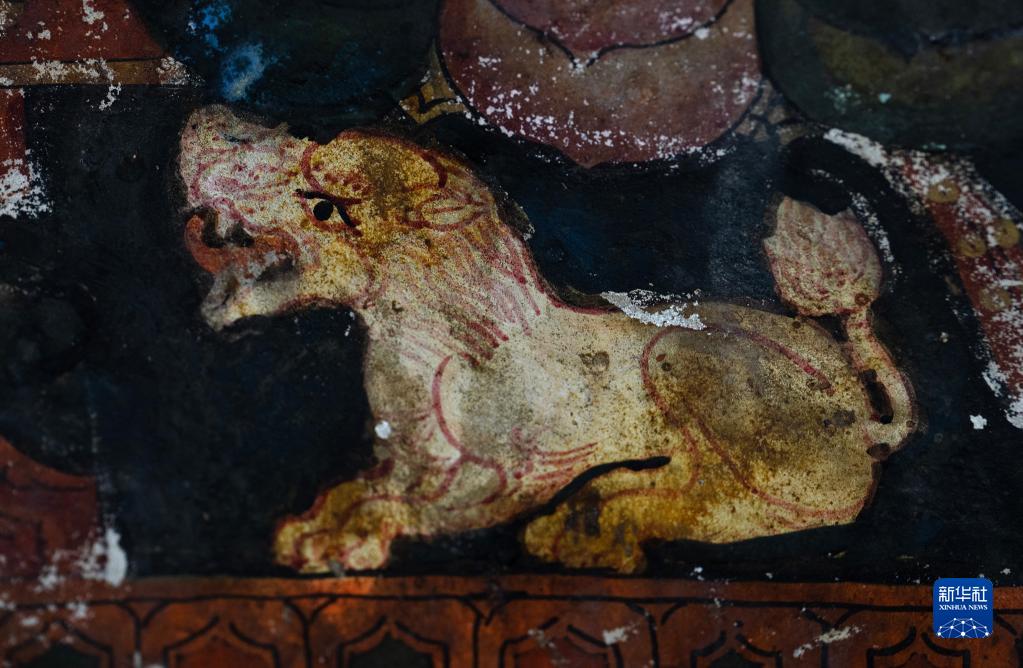 這是5月26日拍攝的皮央石窟壁畫中的獅子像。新華社記者 費茂華 攝