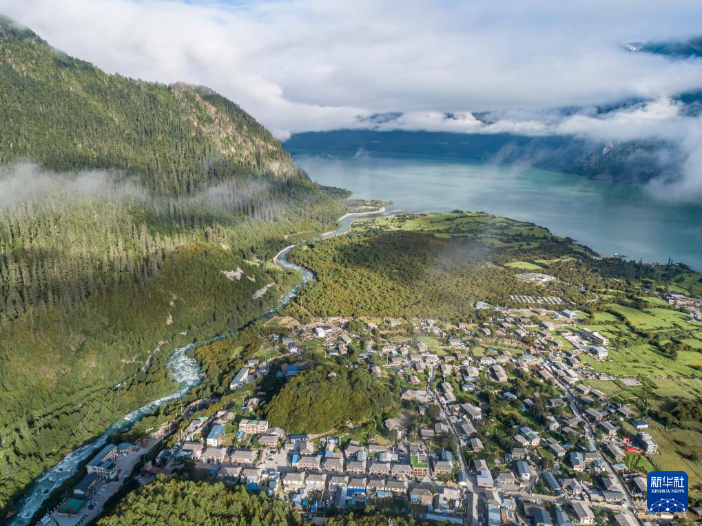這是7月20日拍攝的西藏林芝市工布江達(dá)縣錯(cuò)高鄉(xiāng)結(jié)巴村景色(無(wú)人機(jī)照片)。新華社記者 孫非 攝